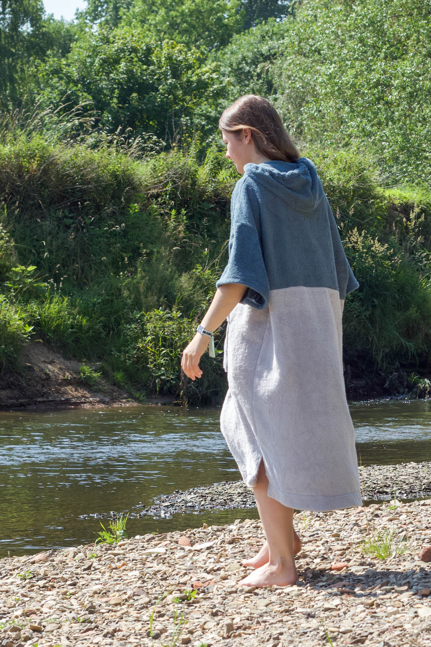 Groß genug um ihn über dem Neoprenanzug zu tragen. Ein umziehen ohne neugierige Blicke ist problemlos möglich, dank der grossen Armöffnungen.